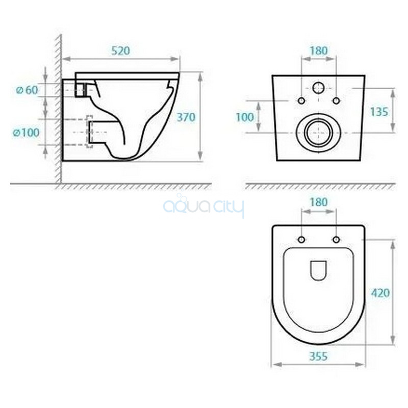 Габариты унитаза (ВхШхГ) 370х355х520