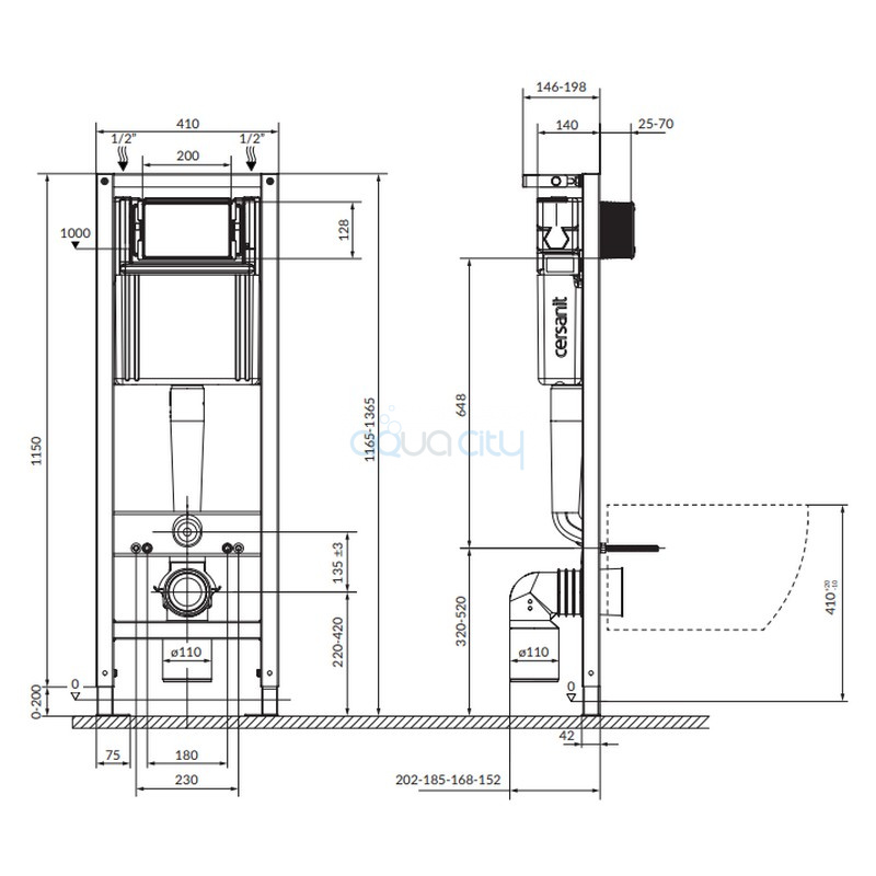 Рама совместима с подвесными унитазами Cersanit (кроме ETIUDA).