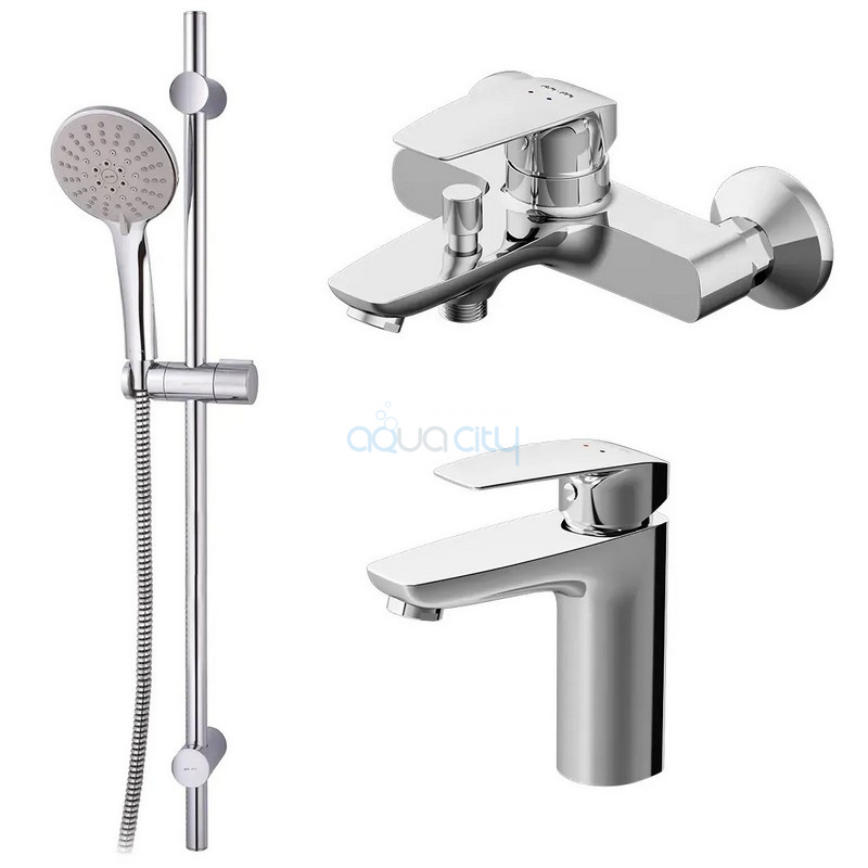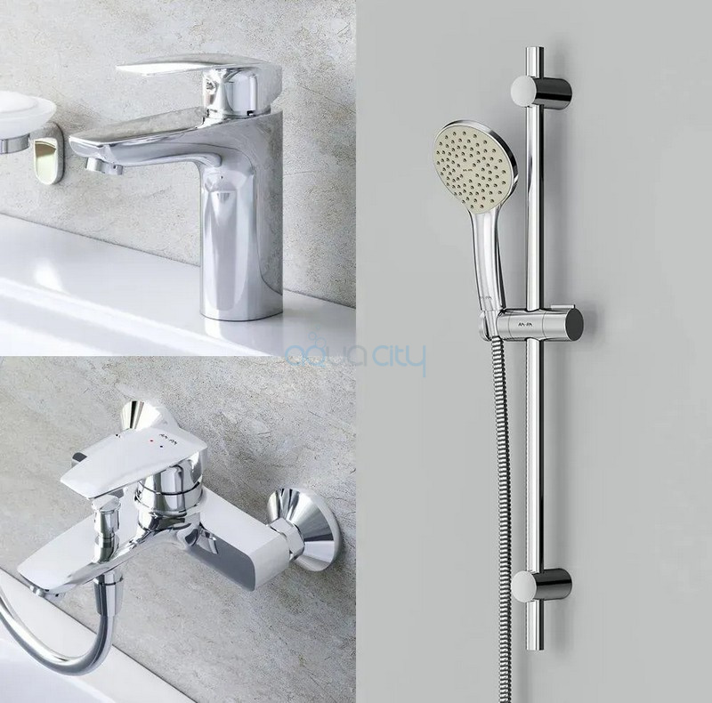 Комплектация держатель для душа / душевой шланг / лейка / смеситель для ванны / смеситель для раковины / штанга