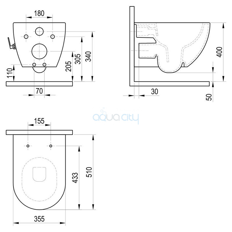 Габарити унітазу (ВхШхГ) 350x355x510