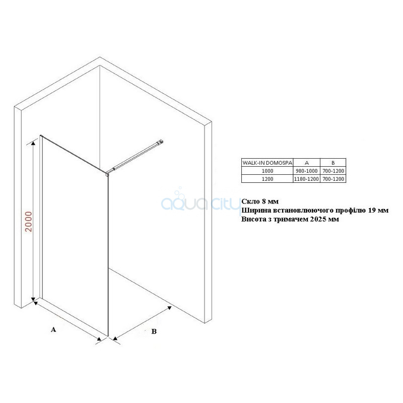 Душова стінка Walk-In 120 Domospa (RKUC500016)