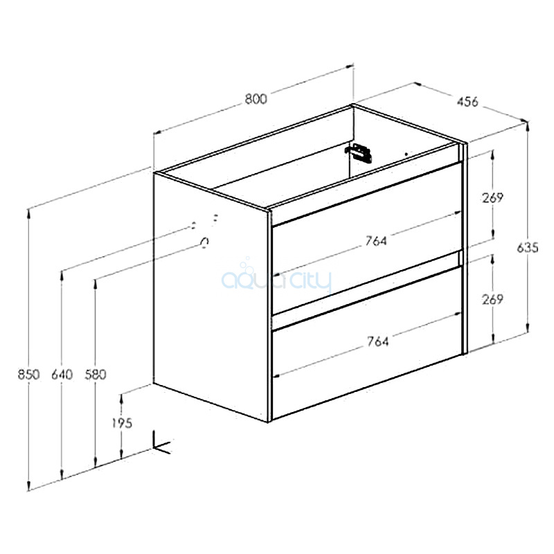 Оснащена двома шухлядами з механізмом тихого закривання.