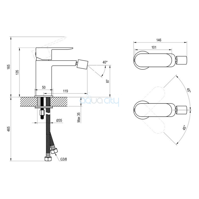 Підключення через гнучкі шланги 450 мм, G3/8.