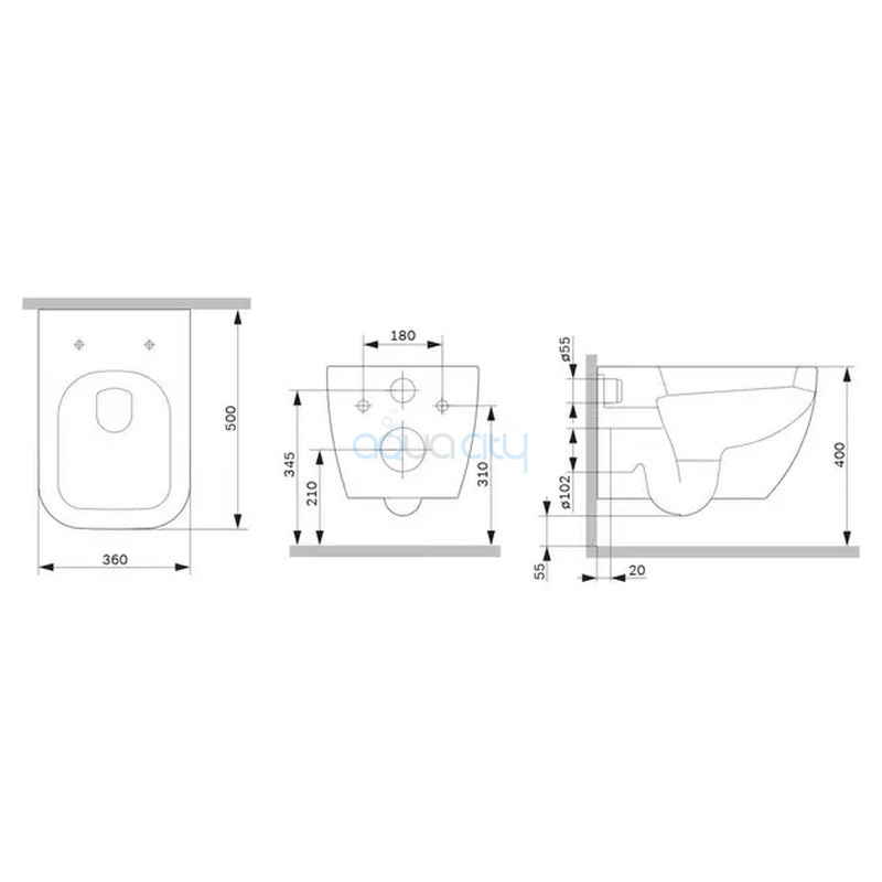 Габариты унитаза (ВхШхГ) 345x360x500